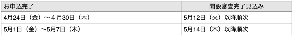 お申込から開設完了までに通常よりお時間をいただきます。